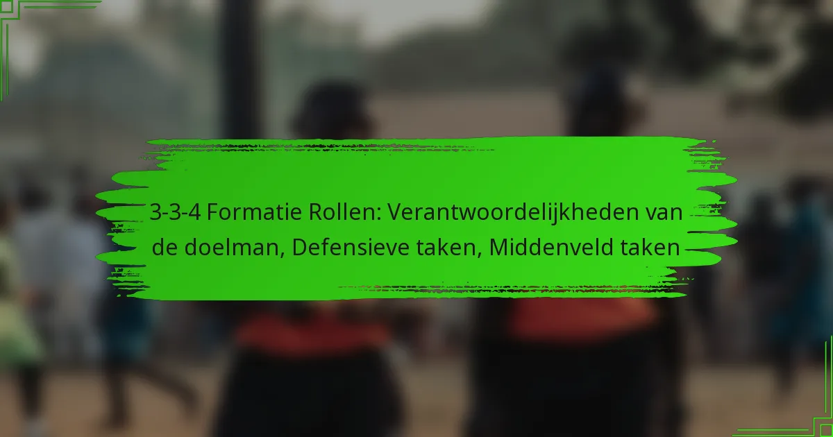 De defensieve taken in de 3-3-4 formatie omvatten een gestructureerde aanpak om de defensieve integriteit te behouden terwijl de overgang naar de aanval wordt gefaciliteerd. Elke speler heeft specifieke rollen die bijdragen aan de algehele effectiviteit van de verdediging, waardoor het team georganiseerd en responsief blijft op de bewegingen van de tegenstander.